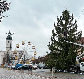 Letošní vánoční strom dorazil na Masarykovo náměstí přesně měsíc před Štědrým dnem. Původně vybraný strom z Vřesovic musel být z technických důvodů nahrazen tímto náhradním.
